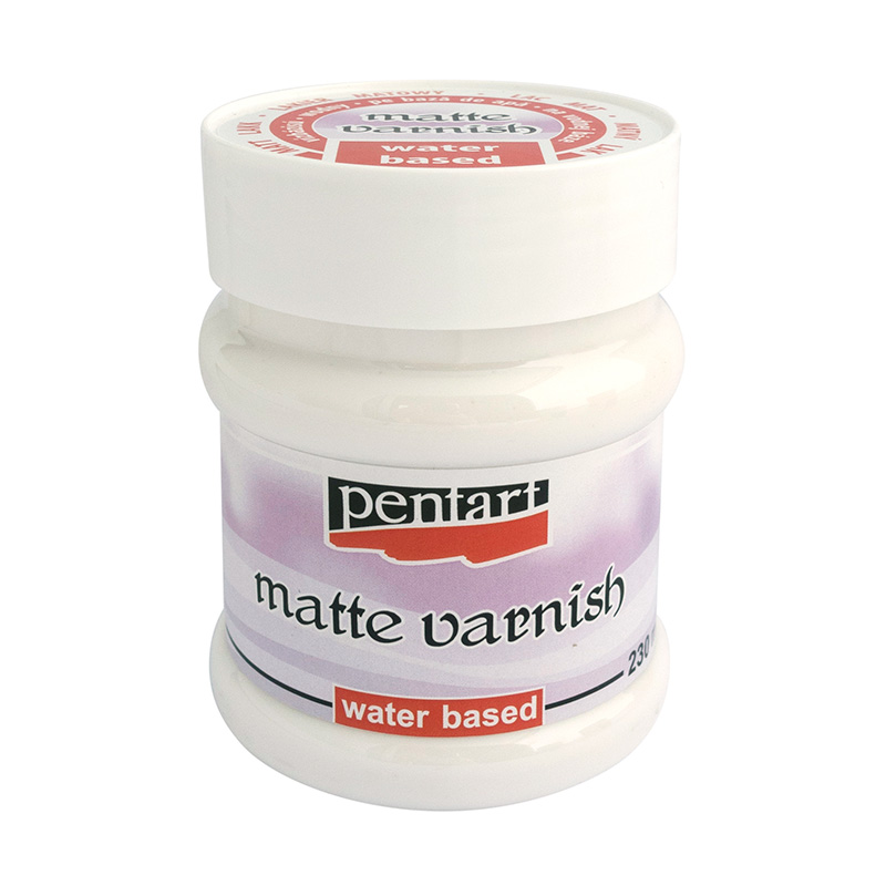 Vesipohjaisella Matte Varnish viimeistelyvernissalla voit suojata erilaiset maalatut, krakeloidut ja kullatut pinnat sekä Express Transfer -kuvansiirtoaineella siirretyt kuvat. Vernissa tarttuu puuhun, metalliin, keramiikkaan ja mihin tahansa jo maalattuun tai koristeltuun pintaan.