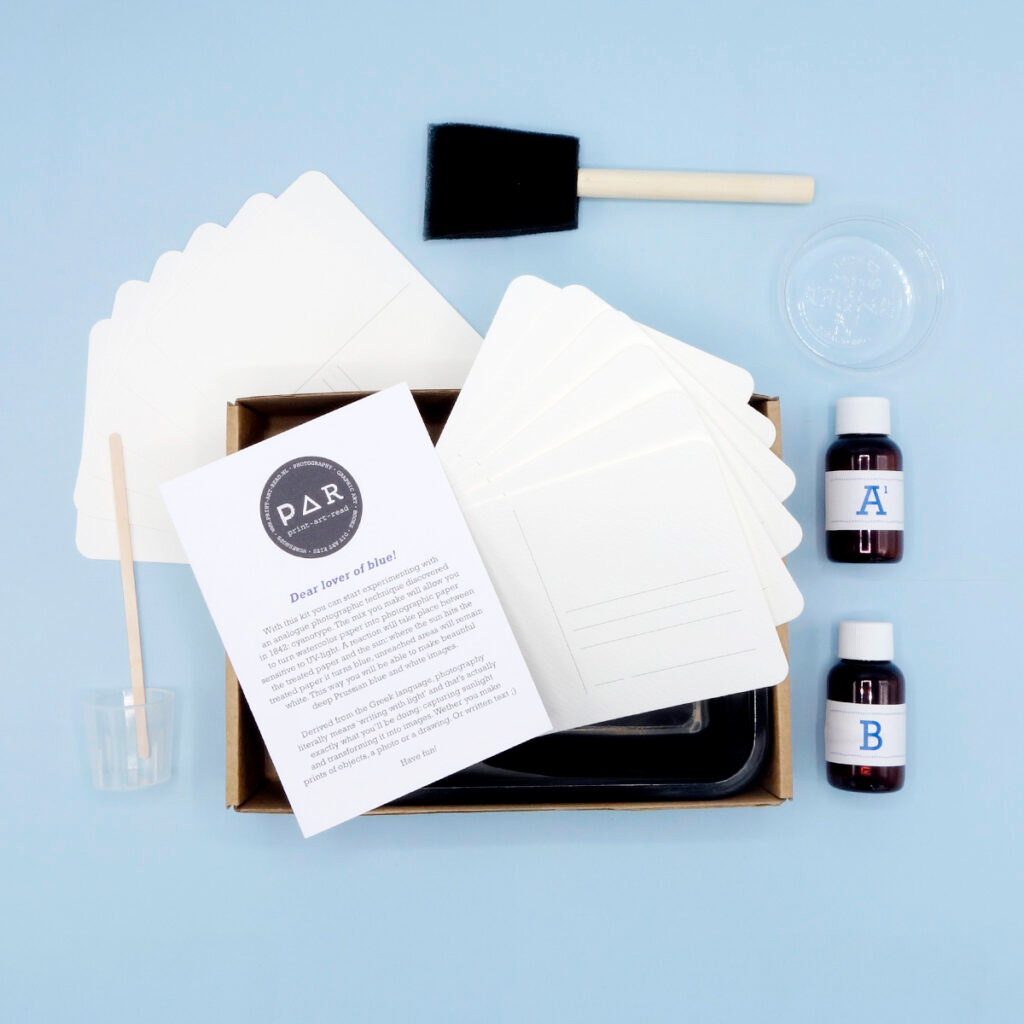 Vinkki! Setti sisältää suomenkieliset vaihe vaiheelta -ohjeet, mutta jos haluat tutustua prosessiin tarkemmin jo nyt, käy lukemassa blogipostaus Syanotypia – Aloittelijan opas!